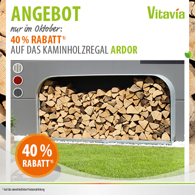 Im Oktober profitieren: Sichern Sie sich 20 % Rabatt auf die Fahrrad-Oase Family – den sicheren Stellplatz für bis zu vier Fahrräder – und ganze 40 % Rabatt auf das Kaminholzregal Ardor aus langlebigem Zincalume®. Praktisch, stilvoll & dauerhaft günstig!